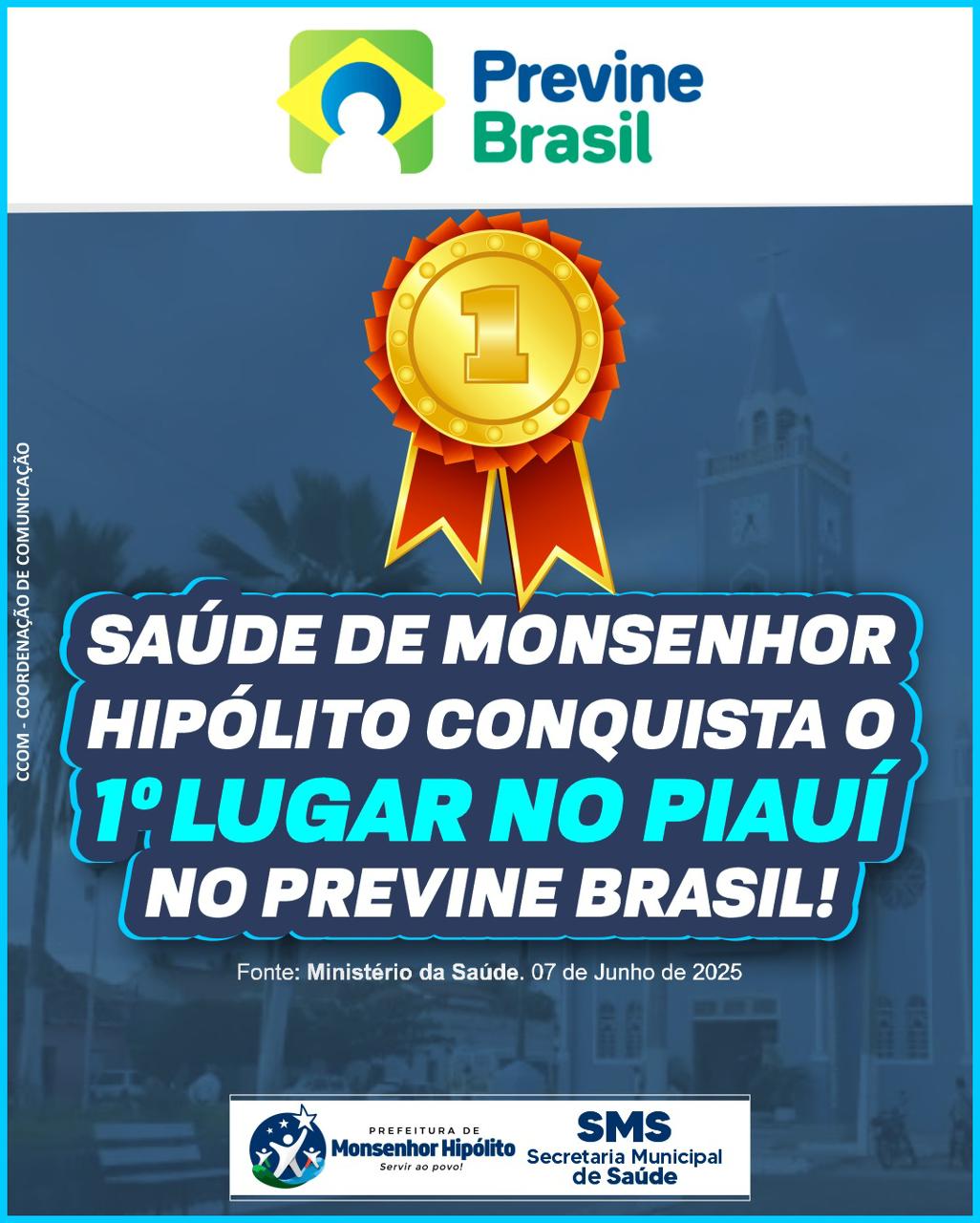 A saúde pública de Monsenhor Hipólito alcançou uma conquista histórica: o município foi reconhecido pelo Ministério da Saúde como o 1º colocado no Piauí no programa Previne Brasil, superando todos os demais municípios do estado em indicadores de atenção primária.