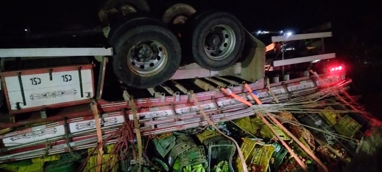 De acordo com informações da Polícia Rodoviária Federal (PRF), o veículo envolvido foi um caminhão modelo Volkswagen 24.280 CRM 6X2, que havia saído do polo frutífero de Petrolina, em Pernambuco, carregado com frutas e verduras. O destino da carga não foi informado.