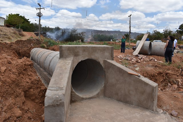 Em alguns pontos da via, com base em estudos topográficos, estão sendo implantadas manilhas de concreto, de 80 centímetros de diâmetro, para o escoamento das águas pluviais.