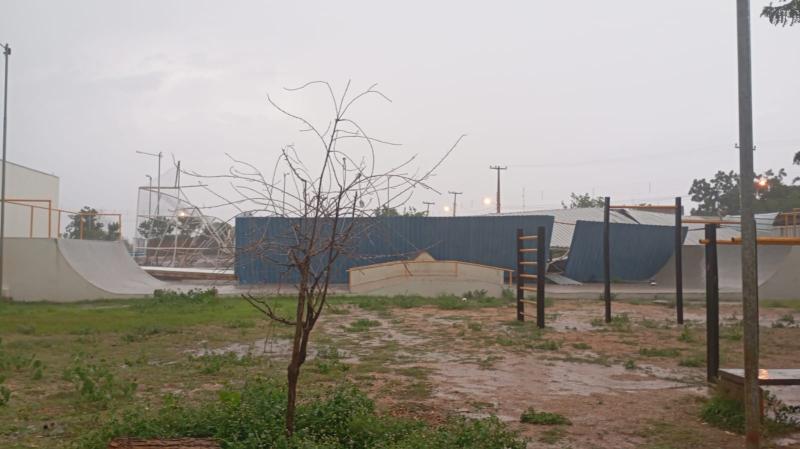 De acordo com informações preliminares, a estrutura do equipamento público não resistiu à força das rajadas de vento e cedeu. No momento do incidente, não havia pessoas no local, e não foram registrados feridos.