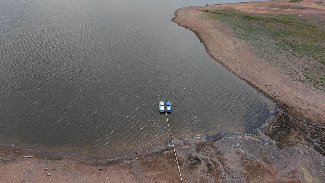 Entre os serviços executados, está a instalação de tubos para extensão do flutuante de captação, medida que permitirá melhor desempenho no bombeamento e mais envio de água bruta até a ETA (Estação de Tratamento de Água).